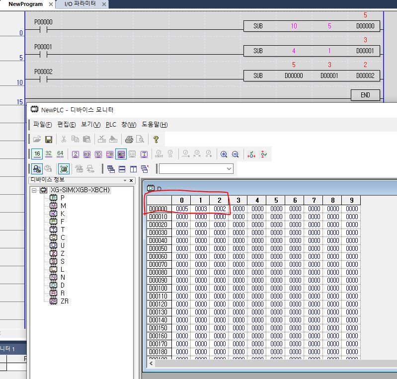 1. 스위치 1을 누르면 10-5의 값이 D0에 저장된다.
