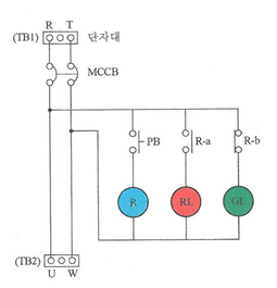 ② 푸시버튼 스위치 PB-a 접점을 누르면 릴레이 R이 여자되어 R-a 접점이 페로되고 RL(적색)램프가 점등되고 R-b 접점이 개로되어 GL(녹색)램프는 소등된다.
