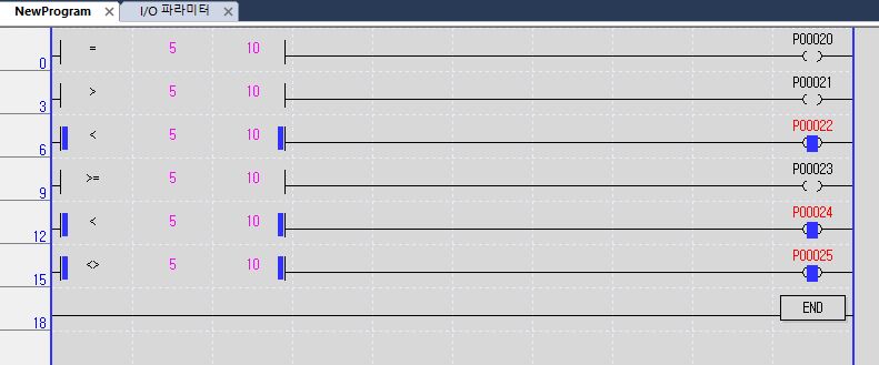 임의의 숫자 2개를 비교명령으로 비교하여 램프를 점등한다.