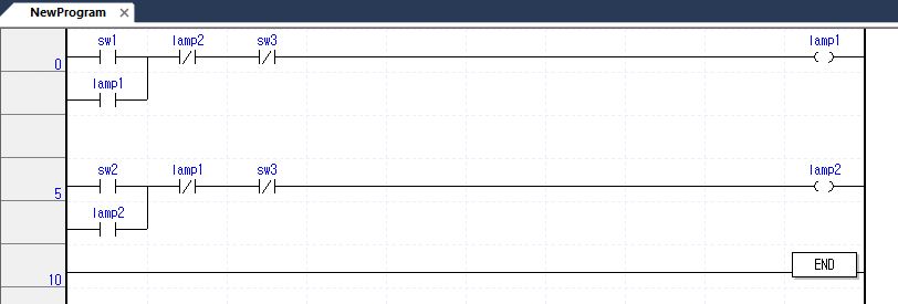 1. 스위치1을 누르면 램프1이 점등된다.(이후 스위치2를 눌러도 램프2는 점등된지 않는다.)