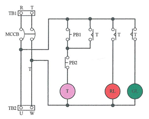 ① R상과 T상에 전원을 투입하면 전류가 흘러 GL(녹색)램프가 점등된다.