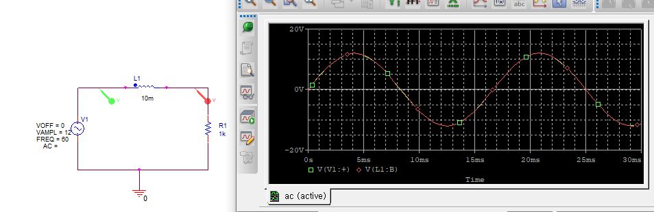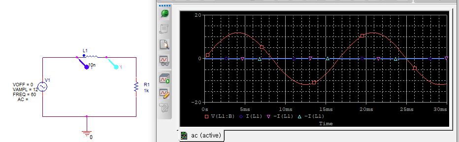 2. 교류전원에서 인덕터의 작용(전압, 10mH)